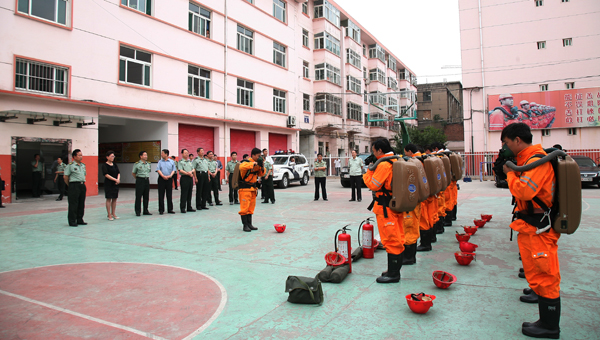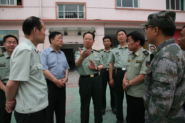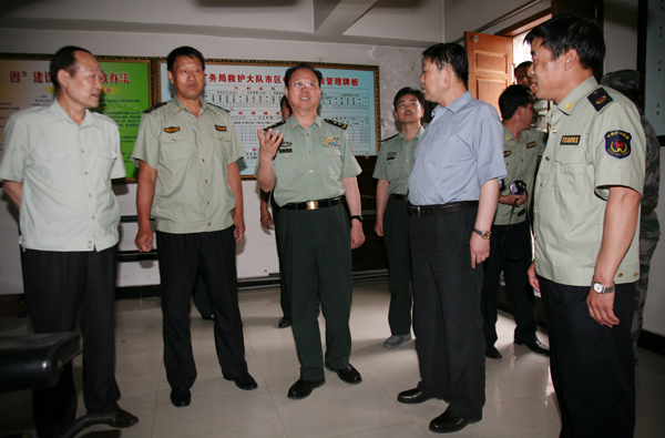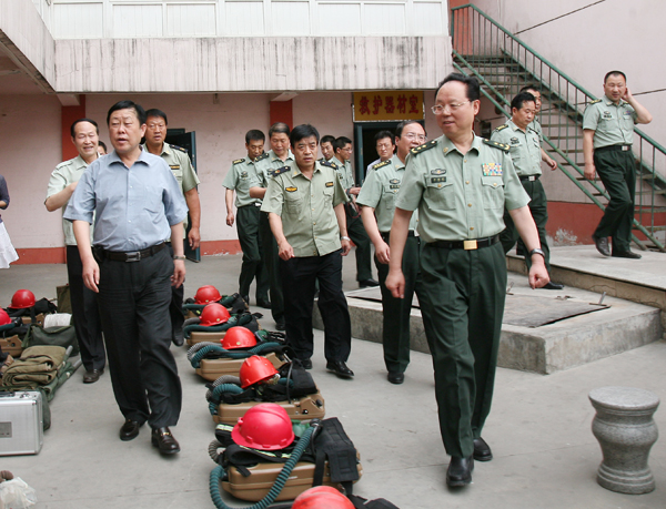 6月18日下午三點半,蘭州軍區(qū)副政委李國輝中將在省軍區(qū)副政委楊輝,銅川市委副書記張應龍,銅川軍分區(qū)司令董少雄、政委黃群明,銅川市王益區(qū)區(qū)委書記王春梅等的陪同下,視察銅川民兵礦難應急分隊工作。