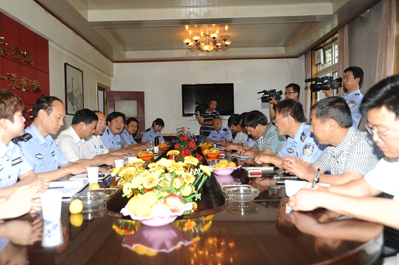 趙宏濤首先到陳家山派出所、陳家山警務(wù)室慰問公安干警,詳細詢問治安保衛(wèi)工作,了解“三訪、三評、三深入活動”開展情況。在陳家山煤礦二樓會議室召開了座談會。會上,陳家山礦礦長邢彥民對市公安局、耀州分局和虹橋分局一行到礦調(diào)研指導(dǎo)工作表示歡迎,并就該礦概況、安全生產(chǎn)、經(jīng)營管理和社會綜合治理情況作了匯報。虹橋分局局長侯小同對視頻監(jiān)控系統(tǒng)的建設(shè)和重點要害部位、礦區(qū)流動人口及出租房屋摸排登記工作簡要做了介紹。