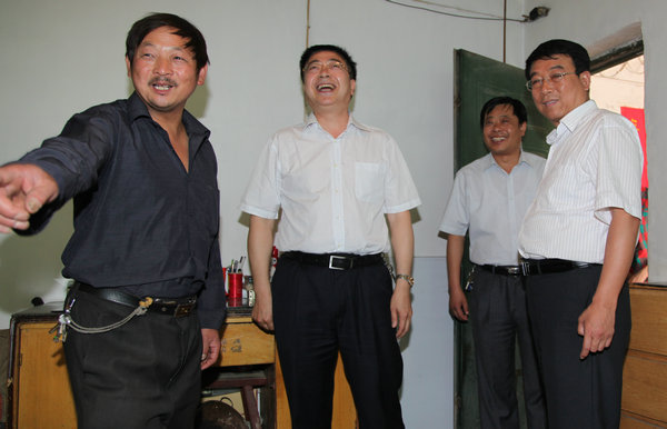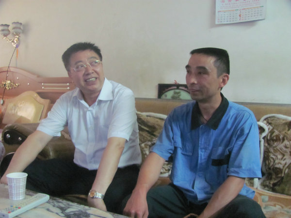 薛鳴一行到廠后,來到困難黨員張松濤家進行慰問,并送上了慰問金。薛鳴拉著張松濤的手說:“建黨節(jié)就要到了,公司沒有忘記你們這些為企業(yè)作出貢獻的黨員們,希望你能夠自立自強,妻子也可以上再就業(yè)培訓班進行學習,有困難一定要找黨組織,我們會想辦法給你解決的”。隨后,薛鳴一行來到該廠棚戶區(qū)建設的工地,指著正在施工的工地說,這一片房子蓋好后,供暖、供氣、供水及綠化、排污等設施要一次到位,把1#至5#樓的冬季取暖問題都一次性解決了,這樣職工冬天就再也不用抬煤生火,又臟又累了。