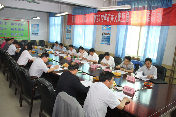 演練活動于當(dāng)天下午15時整正式開始,到17時15分結(jié)束。演練擬定該礦423卸壓抽采巷皮帶機(jī)頭膠帶摩擦浮煤,引起膠帶、浮煤燃燒,火勢較大,現(xiàn)場滅火無效,造成1人一氧化碳中毒。擬定事故發(fā)生后,該礦安質(zhì)科帶班科長郭高民從井下423卸壓抽采巷皮帶機(jī)頭及時向礦生產(chǎn)調(diào)度室作了匯報(bào),同時將人員(含受傷人員)全部撤到擴(kuò)大區(qū)人車場安全地帶,并將動力電源全部切斷。接到匯報(bào)后,該礦演練總指揮邢彥民命令,立即通知副總以上礦領(lǐng)導(dǎo)和各有關(guān)部門、科室、單位負(fù)責(zé)人到調(diào)度室集合待命,并迅速啟動火災(zāi)事故應(yīng)急救援預(yù)案,成立地面應(yīng)急救援總指揮部和井下現(xiàn)場指揮部、后勤指揮部等相應(yīng)的組織機(jī)構(gòu),同時,命令救護(hù)隊(duì)組織人員及時入井并成功滅火后,恢復(fù)正常生產(chǎn)。