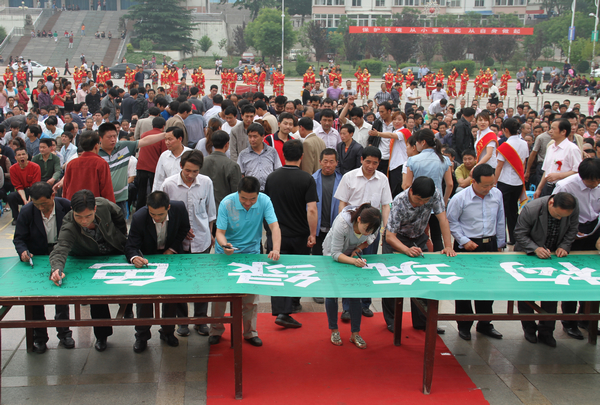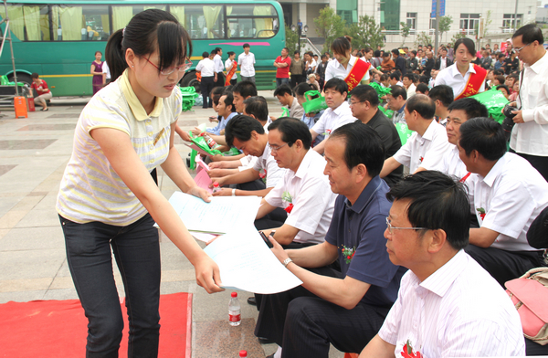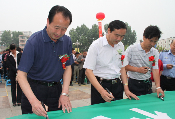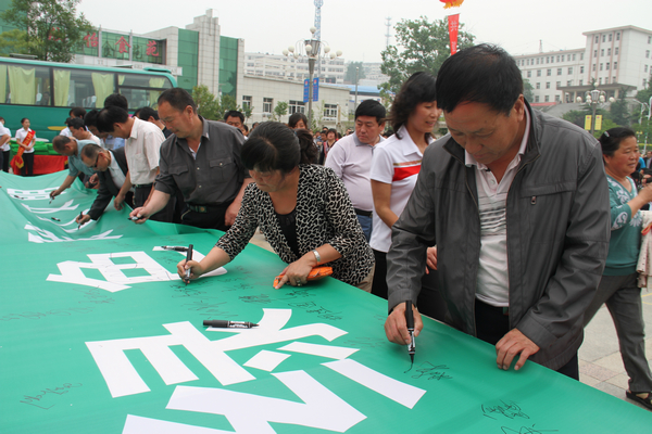 接著,銅川市政協(xié)副主席靳賢孝、下石節(jié)礦黨委書記李國璧等環(huán)保志愿者在印有“攜手環(huán)保,構(gòu)筑綠色,踐行文明”字樣的橫幅上鄭重簽名。該礦青年志愿者還向出席活動(dòng)儀式的領(lǐng)導(dǎo)和干部職工及家屬散發(fā)了3000多份環(huán)境保護(hù)宣傳材料和1000多個(gè)印有“保護(hù)環(huán)境,人人有責(zé)”字樣的環(huán)保手提袋。