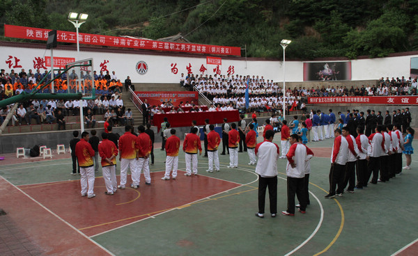 陜西煤業(yè)化工集團(tuán)公司副總經(jīng)理魏鐵軍致開幕詞,他說,陜西煤業(yè)化工集團(tuán)公司“神南礦業(yè)杯”第三屆職工男子籃球賽銅川賽區(qū)的比賽正式拉開帷幕,這是集團(tuán)公司廣大干部職工文化體育生活中的一件大喜事。他代表集團(tuán)公司和大賽組委會,向各各參賽代表隊(duì)和全體教練員、運(yùn)動員、裁判員、工作人員及現(xiàn)場觀戰(zhàn)的職工家屬,表示熱烈的歡迎和誠摯的問候,向大力支持本次比賽的銅川礦業(yè)公司表示衷心的感謝。魏鐵軍要求全體運(yùn)動員嚴(yán)格遵守比賽規(guī)則,發(fā)揚(yáng)頑強(qiáng)拼搏、團(tuán)結(jié)互助的精神,賽出競技水平,賽出道德風(fēng)尚,賽出個性風(fēng)采,賽出團(tuán)結(jié)友誼,充分展現(xiàn)集團(tuán)公司廣大干部職工熱愛健身運(yùn)動、積極奮發(fā)向上的精神風(fēng)貌。同時,希望全體裁判員和工作人員要堅持公開、公正、公平的原則,嚴(yán)肅比賽紀(jì)律,認(rèn)真負(fù)責(zé)地做好各項(xiàng)工作,確保比賽順利進(jìn)行。希望通過本屆籃球賽的舉辦,在全集團(tuán)公司進(jìn)一步掀起全民健身的熱潮,鼓舞廣大干部職工牢固樹立終身運(yùn)動的觀念,用陽光的心態(tài)和健康的身體,為集團(tuán)公司實(shí)現(xiàn)新的跨越發(fā)展再做新的貢獻(xiàn)。