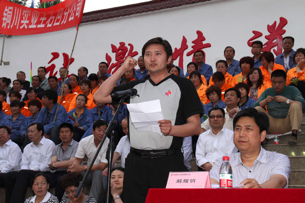 銅川礦業(yè)公司黨委書記黃河致歡迎詞,他代表銅川礦業(yè)公司黨政工團(tuán)組織和職工家屬,對本屆職工籃球賽的開賽表示熱烈的祝賀,向蒞臨籃球賽開幕式的各位領(lǐng)導(dǎo)、各位嘉賓表示熱烈的歡迎,向全體運(yùn)動員、教練員、裁判員致以崇高的敬意和良好的祝愿。黃河指出,組織舉辦職工籃球賽,不僅是集團(tuán)公司全民健身活動的縮影,也是對集團(tuán)公司改革發(fā)展成果和干部職工精神風(fēng)貌的展示和檢閱。同時,也為大家提供了一次相互了解、相互交流、相互學(xué)習(xí)、相互促進(jìn)的機(jī)會。這次能承辦集團(tuán)公司第三屆職工籃球賽銅川賽區(qū)賽事,對銅川礦業(yè)公司廣泛開展職工文體活動,不斷豐富礦區(qū)文化生活,建設(shè)安全、穩(wěn)定、充滿活力的和諧礦區(qū)具有十分重要的意義。作為承辦單位,銅川礦業(yè)公司會努力做好比賽的各項(xiàng)工作,以精心的組織、熱忱的服務(wù),把這次籃球賽辦成一個快樂、和諧、精彩的盛會,辦成一個團(tuán)結(jié)鼓勁、凝聚人心、促進(jìn)發(fā)展的盛會。銅川礦業(yè)公司決心以這次體育比賽為契機(jī),繼續(xù)組織開展好豐富多彩的全民健身活動,進(jìn)一步增強(qiáng)企業(yè)凝聚力、向心力和戰(zhàn)斗力,激發(fā)廣大干部職工投身企業(yè)改革發(fā)展的積極性、主動性和創(chuàng)造性,立足本職,扎實(shí)工作,愛崗敬業(yè),拼搏奉獻(xiàn),為建設(shè)平安穩(wěn)定和諧富裕新礦區(qū),推進(jìn)集團(tuán)公司跨越式發(fā)展做出新的更大貢獻(xiàn)。