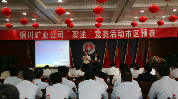 繼5月16日、18日分別在下石節(jié)、金華山礦舉辦了銅川礦業(yè)公司“雙述”競(jìng)賽活動(dòng)北區(qū)、東區(qū)兩場(chǎng)預(yù)賽后,5月22日下午在鐵運(yùn)公司舉辦了銅川礦業(yè)公司“雙述”競(jìng)賽活動(dòng)市區(qū)預(yù)賽,來(lái)自供應(yīng)處、地勘公司、鐵運(yùn)分公司、救護(hù)大隊(duì)、機(jī)電分公司、多經(jīng)公司、機(jī)關(guān)工委、一五三廠等輔助單位的8名選手參加了比賽。