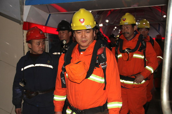參加演練的救援人員入井
