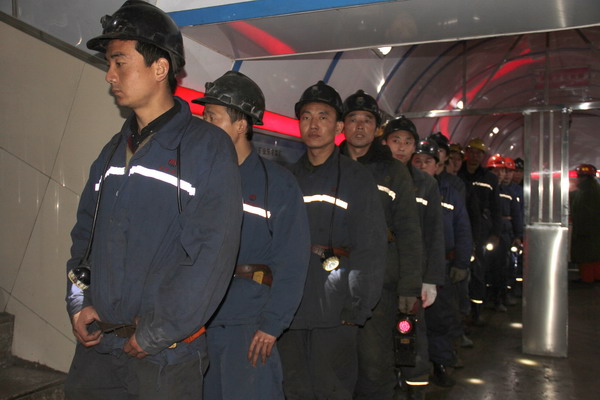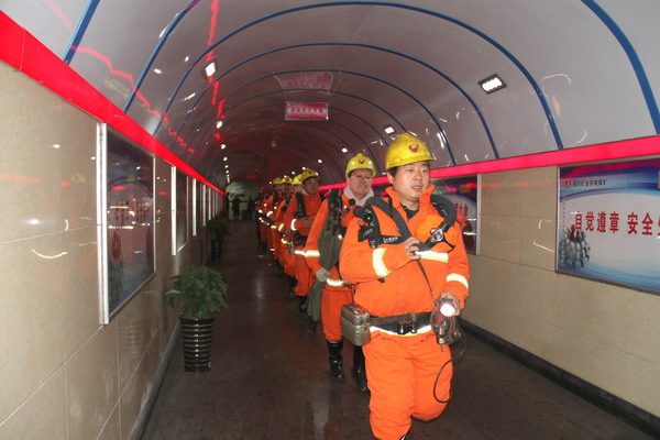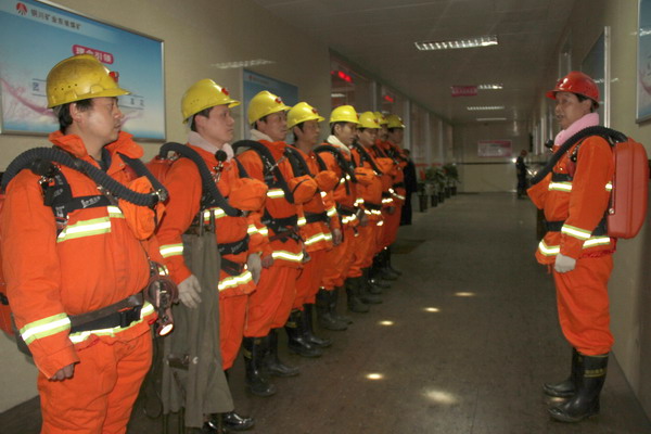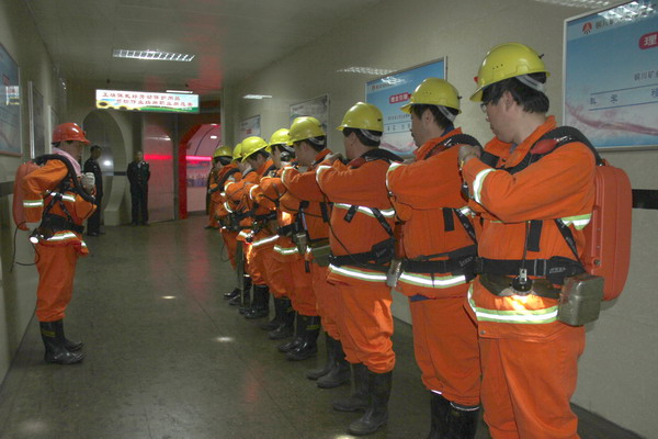 東坡礦兼職救護(hù)隊(duì)員整裝演練場景