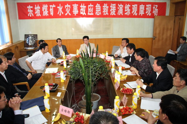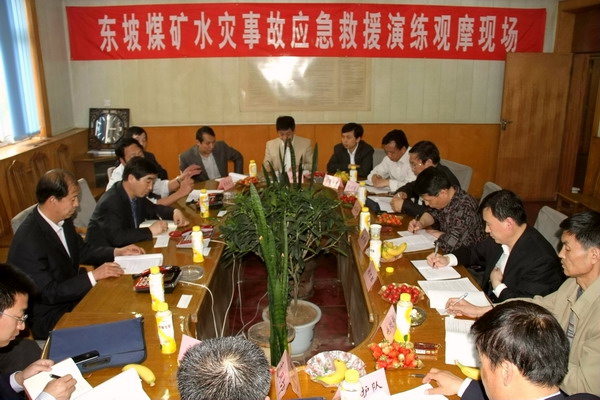 為了認(rèn)真貫徹落實(shí)礦業(yè)公司2012年應(yīng)急預(yù)案演練活動(dòng)安排,增強(qiáng)職工對(duì)突發(fā)性事故的安全防范意識(shí),提升職工的防災(zāi)救援能力,經(jīng)過充分準(zhǔn)備, 4月30日,東坡礦結(jié)合實(shí)際,在該礦開展了“水災(zāi)事故”應(yīng)急預(yù)案演練觀摩會(huì)。當(dāng)天下午,礦業(yè)公司總調(diào)度室、安監(jiān)部、救護(hù)大隊(duì)、機(jī)電管理部、生產(chǎn)部、地測(cè)部、通風(fēng)部等有關(guān)部門,東坡礦黨委書記李新忠,副礦長、總工程師龔永安,副礦長白曉增、吳剛、張東風(fēng)等黨政領(lǐng)導(dǎo)以及該礦有關(guān)部門科室負(fù)責(zé)人參加了觀摩會(huì)。
