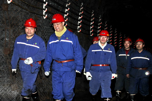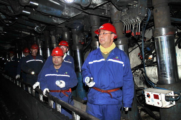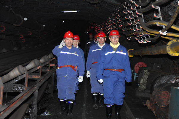 黃河書記到礦后,首先向該礦黨政主要領(lǐng)導(dǎo)仔細(xì)詢問了該礦目前的安全生產(chǎn)和煤炭銷售及經(jīng)營狀況。黃書記十分關(guān)心該礦的煤炭質(zhì)量及銷售情況,聽取有關(guān)情況后,立即帶領(lǐng)隨行人員到該礦儲煤場現(xiàn)場察看了煤炭存量和煤質(zhì)情況。為了進(jìn)一步了解掌握實際情況,上午10時30分左右,黃河書記又帶領(lǐng)隨行人員更衣下井,與該礦黨政主要領(lǐng)導(dǎo)一同深入正在生產(chǎn)的422綜采工作面,對系統(tǒng)特別是綜采工作面的地質(zhì)變化及運行狀況進(jìn)行了認(rèn)真詳細(xì)的調(diào)查了解。