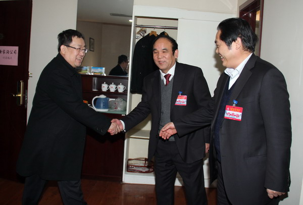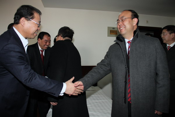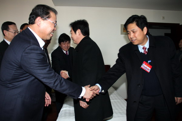2月8日下午,公司領(lǐng)導(dǎo)班子全體成員,一同看望與會代表團(tuán)代表。公司總經(jīng)理宋志剛、黨委書記黃河、黨委副書記、工會主席劉啟科、黨委副書記、紀(jì)委書記徐捷、副總經(jīng)理劉水利、師同民、薛鳴、封建利和張志文等一起來到各小組討論地點,與大家一一握手致意,大家談笑風(fēng)生,氣氛極為融洽??偨?jīng)理宋志剛說,大家開好會,要吃好、休息好,鼓足干勁,齊心協(xié)力把今年的指標(biāo)完成好。黨委書記黃河向各代表團(tuán)同志一一介紹班子的幾位新成員,即劉啟科、徐捷、師同民等。他說,啟科同志是新職務(wù),徐捷、同民是新提任的公司領(lǐng)導(dǎo),以后工作中加強聯(lián)系,方便工作。2月9日開會討論期間,各位領(lǐng)導(dǎo)和與會代表暢所欲言,共話企業(yè)改革與發(fā)展,共同描繪礦業(yè)公司未來的錦繡前程和美好藍(lán)圖。