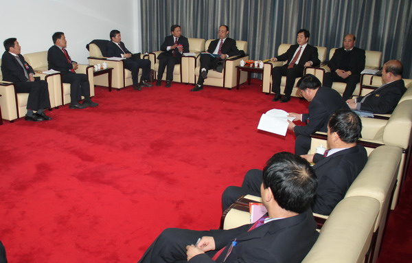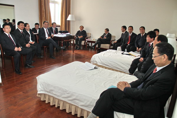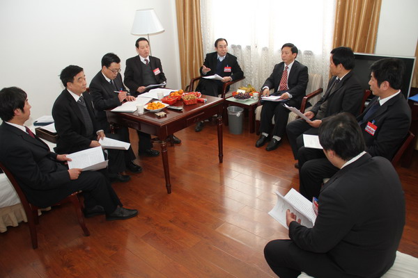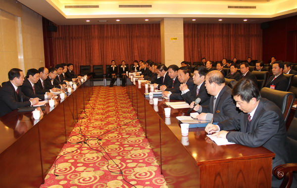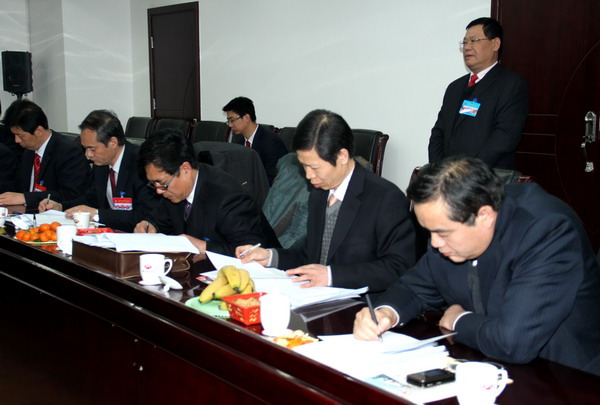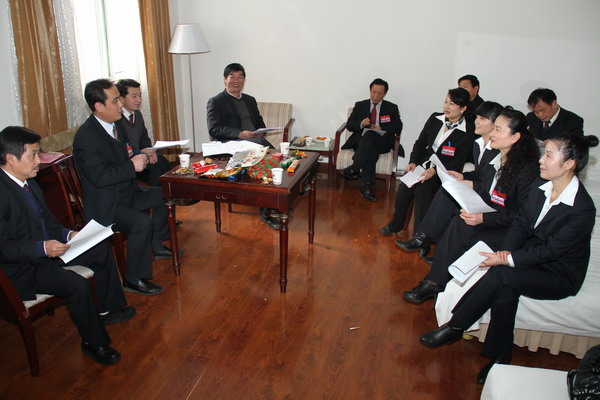 公司黨委書記黃河、黨委常委、副總經(jīng)理劉水利參加金華山礦代表團小組討論會