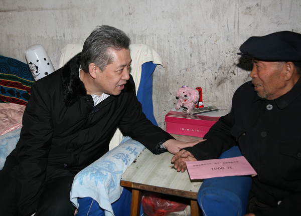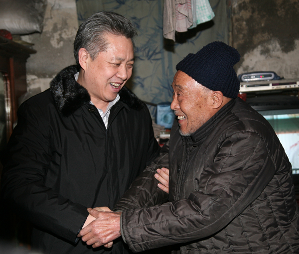 在關(guān)長(zhǎng)喜家中,華煒握著關(guān)長(zhǎng)喜的手關(guān)切地噓寒問暖。當(dāng)?shù)弥救嘶加行呐K病,其老伴患腦溢血花費(fèi)3萬(wàn)多元,至今癱瘓?jiān)诖玻A煒非常同情地說,困難是暫時(shí)的,有困難找社區(qū),找組織解決,今天給你們送來米面油和1000元慰問金,希望你們過個(gè)好年。隨即,華煒又問宋志剛局長(zhǎng)和社區(qū)主任司金萍,他們的住房條件不好,是不是都分上房子了?宋志剛說,像關(guān)師傅這些退休的老職工,都屬于棚戶區(qū)改造的搬遷戶,都已經(jīng)登記過了,關(guān)師家的房子已經(jīng)分過了,今年就可入住了。