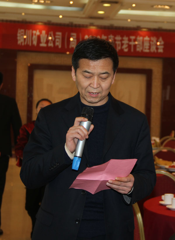 會上,黃河書記向老干部們致以新春問候和新年祝福,并從安全生產、企業(yè)改革、黨建工作、企業(yè)文化、技術科研、民生工程等方面向老干部們介紹了2011年公司的發(fā)展情況。他指出,2011年是“十二五”開局之年,這一年,在集團公司的正確領導下,銅川礦業(yè)公司全體干部職工開拓進取,務實拼搏,各方面工作都取得了新的成績,各項指標再創(chuàng)歷史新高。這些成績的取得離不開歷屆老領導、老同志打下的良好基礎,離不開廣大離退休老干部對銅川礦業(yè)公司(局)工作的關心和支持。