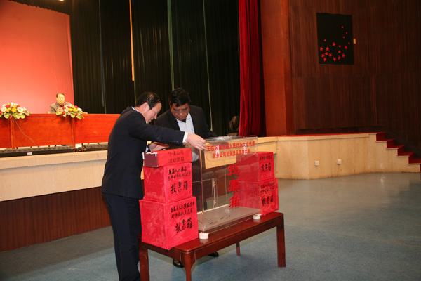 銅川礦業(yè)公司機(jī)關(guān)選區(qū)選舉大會(huì)嚴(yán)格按照各項(xiàng)程序進(jìn)行。首先,機(jī)關(guān)事務(wù)中心黨總支書(shū)記楊掌印同志宣讀授權(quán)書(shū)。奧博集團(tuán)黨委副書(shū)記、紀(jì)委書(shū)記、工會(huì)主席孫祥春同志宣讀《區(qū)人大代表選舉辦法》,機(jī)關(guān)工委副書(shū)記南民生同志宣讀本選區(qū)區(qū)人大代表正式候選人名單。機(jī)關(guān)工委副書(shū)記孫曉明同志宣讀本選區(qū)王益區(qū)第九屆人民代表大會(huì)代表投票選舉法(草案)。接著,工作人員認(rèn)真清點(diǎn)到會(huì)選民人數(shù)和委托選民人數(shù)。全體選民舉手通過(guò)總監(jiān)票人、監(jiān)票人、總計(jì)票人、計(jì)票人名單。監(jiān)票人楊掌印、孫祥春檢查票箱,公開(kāi)透明。主持人秦文俊說(shuō)明寫(xiě)票注意事項(xiàng)。然后,全體選民進(jìn)行了認(rèn)真投票,把自己神圣的一票投給自己相信的人。