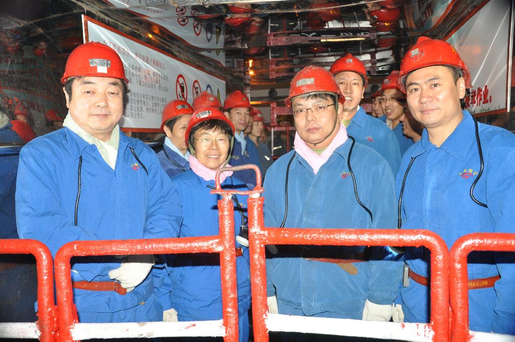 陜西煤業(yè)股份公司副總經(jīng)理李文革(右二)在銅川礦業(yè)公司副總經(jīng)理劉水利(左一),