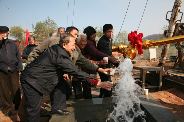 水源井施工單位-——地勘公司黨委書記、經(jīng)理張海龍代表施工單位向金華山礦職工家屬表示中心的感謝。介紹了施工方案,施工時(shí)間,10月14日開(kāi)始抽水試驗(yàn),水源井每天出水量達(dá)到1000立方以上,達(dá)到了預(yù)期目的。并向在施工工程中,給予關(guān)心和支持的礦業(yè)公司領(lǐng)導(dǎo),規(guī)劃部,地測(cè)部以及金華山礦的黨政領(lǐng)導(dǎo)表示中心的感謝。