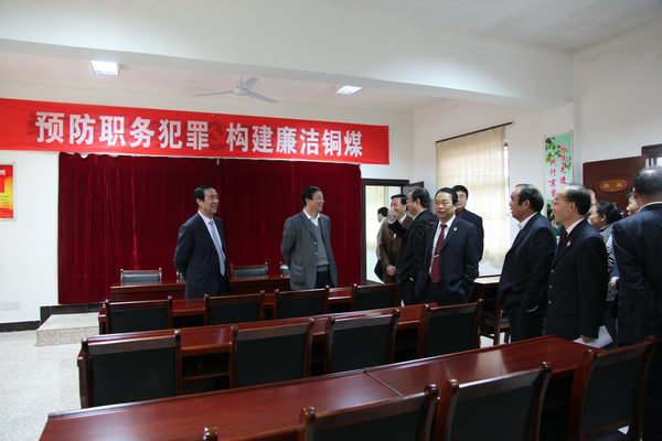 與會代表參觀王石凹煤礦為預(yù)防職務(wù)犯罪工作專設(shè)的辦公場所