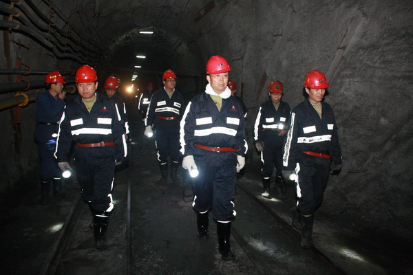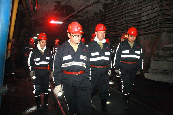 黃書記一行人到礦后,在該礦礦長(zhǎng)李文輝等領(lǐng)導(dǎo)陪同下,深入井下實(shí)地查看了該礦井下作業(yè)環(huán)境、質(zhì)量標(biāo)準(zhǔn)化建設(shè)、以及企業(yè)文化建設(shè)推行情況,現(xiàn)場(chǎng)觀摩了職工崗位描述,聽取了該礦礦長(zhǎng)李文輝等領(lǐng)導(dǎo)對(duì)目前井下各項(xiàng)工作進(jìn)展情況介紹,并對(duì)重要工作環(huán)節(jié)與該礦領(lǐng)導(dǎo)進(jìn)行了交流。在升井后,黃書記一行人在該礦礦長(zhǎng)李文輝,黨委書記李國(guó)璧等陪同下又視察了該礦工業(yè)場(chǎng)所。