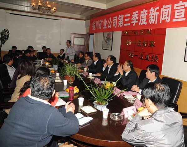 10月10日上午,公司第三季度新聞宣傳工作例會在陳家山礦召開。公司黨委宣傳部部長李德強、副部長席選民,銅川礦工報社社長、總編顧寶成,陳家山礦黨委書記暢永光、礦長師同民出席會議并講話。陳家山礦黨委副書記、工會主席謝國慶代表礦黨政工團組織在會上致辭。來自公司所屬基層各單位的新聞宣傳部門負責人、新聞宣傳干事等30余人參加了會議。