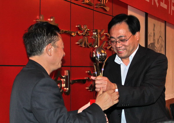 新聞報道工作優(yōu)勝單位的陳家山礦頒發(fā)獎杯