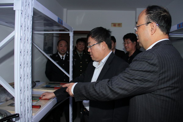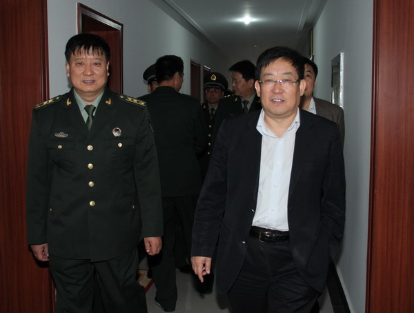 礦業(yè)公司副總經(jīng)理郭寶輝、封建利視察連部庫(kù)室及維穩(wěn)器材設(shè)施建設(shè)