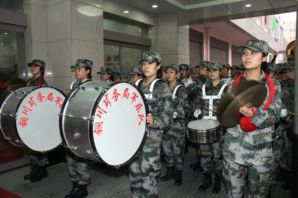 10月11日,銅川預(yù)備役炮兵團(tuán)八五加農(nóng)炮營(yíng)一連暨防爆維穩(wěn)應(yīng)急分隊(duì)在鐵路運(yùn)銷分公司正式組建成立。礦業(yè)公司總經(jīng)理、局長(zhǎng)宋志剛,黨委書(shū)記黃河,副總經(jīng)理、加農(nóng)炮團(tuán)副團(tuán)長(zhǎng)郭寶輝、封建利,炮兵團(tuán)政委袁亞峰,銅川市公安局虹橋分局局長(zhǎng)趙宏濤等出席大會(huì)并為連隊(duì)題詞。