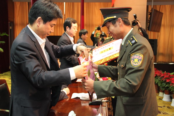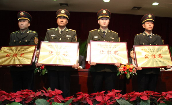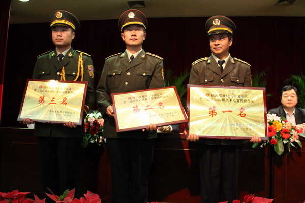 首先,本屆競賽裁判長陳學(xué)宣布了競賽成績。銅川礦業(yè)救護(hù)大隊、彬長礦業(yè)救護(hù)大隊分別獲得模擬救災(zāi)、醫(yī)療急救競賽第一名。彬長礦業(yè)公司段志虎一舉奪得呼吸器操作和綜合體能競賽雙項第一名;銅川礦業(yè)公司救護(hù)大隊楊成一舉奪得個人全能第一名、呼吸器操作第二名、綜合體能第三名的好成績。陜煤化集團(tuán)安全、生產(chǎn)、環(huán)保部總工、大會副裁判長歸會林宣布了集團(tuán)公司的表彰決定:銅川礦業(yè)救護(hù)大隊獲得團(tuán)體獎第一名,神南礦業(yè)、澄合礦業(yè)救護(hù)大隊分獲團(tuán)體獎二、三名;彬長礦業(yè)救護(hù)大隊等4個單位代表隊獲得優(yōu)勝獎。與會領(lǐng)導(dǎo)向獲獎單位和獲獎選手頒發(fā)了獎牌和榮譽(yù)證書。