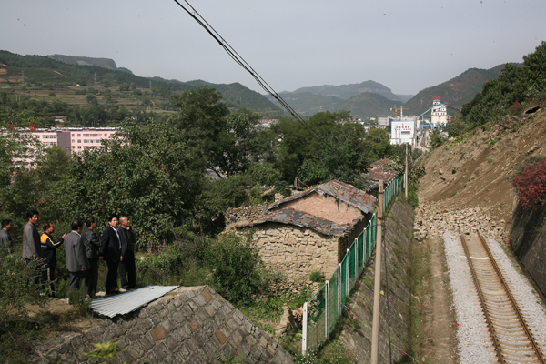 9月上旬連日的降雨,致使銅川礦區(qū)鐵路專用線多處滑坡。9月27日一早,鐵運公司北區(qū)段工務人員在例行檢查時發(fā)現陳家山專用鐵路線K4km+950m處東面護坡滑塌,接到報警后,北區(qū)段黨政領導立即組織人員上山進行勘察發(fā)現從路基到山頂約300米的整個山體按山勢西北方向側滑,滑動土石量約7-10萬方。險情發(fā)生后,北區(qū)段向上級匯報,鐵運公司經理孫建軍立即下達命令,啟動“三防”預案,封鎖現場以外150米的鐵路線路,指定專人設立警示路牌,晝夜24小時把守重要路段,觀察現場情況。并及時與陳家山礦方聯系。陳家山礦黨政領導多次到現場觀察險情,組織人員疏散10戶轄區(qū)住戶。