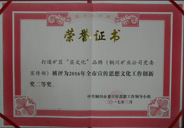 在3月9日召開的銅川市宣傳思想文化工作會上,公司喜獲多項殊榮,受到市上的表彰。在這次會上,公司黨委中心組被市委宣傳部、市委理論講師團授予全市黨委中心組學(xué)習(xí)先進(jìn)集體;公司黨委宣傳部被銅川市委對外宣傳領(lǐng)導(dǎo)小組授予2016年全市對外宣傳工作先進(jìn)單位;公司黨委宣傳部申報的下石節(jié)礦“實文化”品牌被市委宣傳思想工作領(lǐng)導(dǎo)小組評為2016年全市宣傳思想文化工作創(chuàng)新獎二等獎。