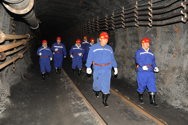 上午10時(shí),國(guó)稅局副局長(zhǎng)張寧一行,在陳家山煤礦主要領(lǐng)導(dǎo)的陪同下,深入井下察看了該礦井下的設(shè)備運(yùn)行及安全情況。視察途中與陪同檢查領(lǐng)導(dǎo)進(jìn)行了親切交談,詳細(xì)詢問(wèn)了井下安全投入、入井人數(shù)、“一通三防”管理及瓦斯綜合治理及煤礦安全措施落實(shí)等情況。