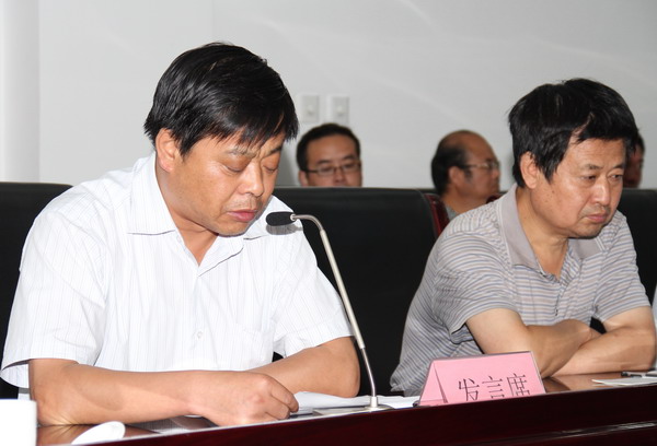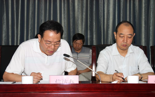 公司信訪辦副主任馬宜福(左)通報(bào)1-8月份信訪情況