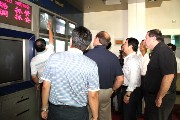 當(dāng)天上午,中美煤礦安全專家調(diào)研組一行抵達(dá)陳家山礦后,在該礦機(jī)關(guān)二樓會(huì)議室舉行了“中美礦山(煤礦)安全合作項(xiàng)目調(diào)研座談會(huì)”。會(huì)上,陳家山礦黨委書記暢永光首先代表礦黨政致歡迎詞,接著,調(diào)研組一行觀看了陳家山礦專題片,并聽取了陳家山礦副礦長、總工程師孫相斌就該礦基本情況和通風(fēng)系統(tǒng)情況及生產(chǎn)過程中遇到的問題和難題等有關(guān)情況的簡要介紹。隨后,調(diào)研組一行又到陳家山礦瓦斯監(jiān)測監(jiān)控室、生產(chǎn)調(diào)度室和安子溝瓦斯抽放站、瓦斯發(fā)電廠,現(xiàn)場參觀了該礦瓦斯監(jiān)測監(jiān)控系統(tǒng)、生產(chǎn)調(diào)度指揮系統(tǒng)和瓦斯抽放系統(tǒng)、瓦斯發(fā)電等設(shè)施設(shè)備運(yùn)行情況。