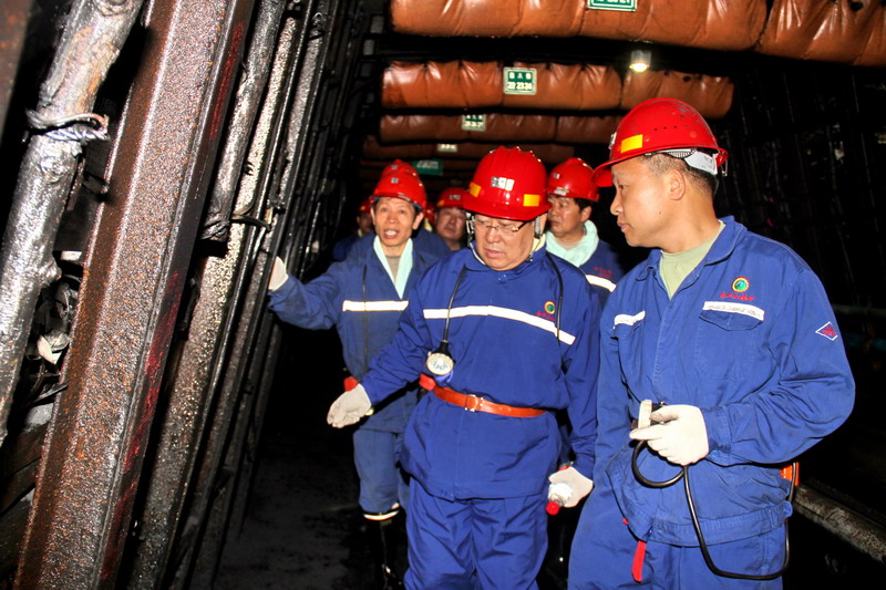 當(dāng)天一大早,公司總經(jīng)理宋志剛,副總經(jīng)理、總工程師劉啟科到礦后,首先聽取了礦長寧文衛(wèi)對金華山礦前半年安全生產(chǎn)、質(zhì)量標(biāo)準(zhǔn)化及地面建設(shè)等方面工作情況的簡要匯報。隨后,在礦長寧文衛(wèi)等礦領(lǐng)導(dǎo)的陪同下,更衣下井。從井口到井下綜采工作面近6公里的路途中,總經(jīng)理宋志剛一邊聽取公司有關(guān)部門和金華山礦領(lǐng)導(dǎo)的介紹,一邊十分仔細(xì)地察看井下安全管理和質(zhì)量標(biāo)準(zhǔn)化建設(shè)等情況,饒有興致地乘坐體驗了新安裝的680和570兩部架空人車,參觀了該礦在3603綜采工作面上順專門為下井職工新開設(shè)的井下“小超市”,對金華山礦以人為本,大力改造井下工作環(huán)境,為下井職工創(chuàng)造良好舒適的工作環(huán)境和生活條件給予充分肯定。