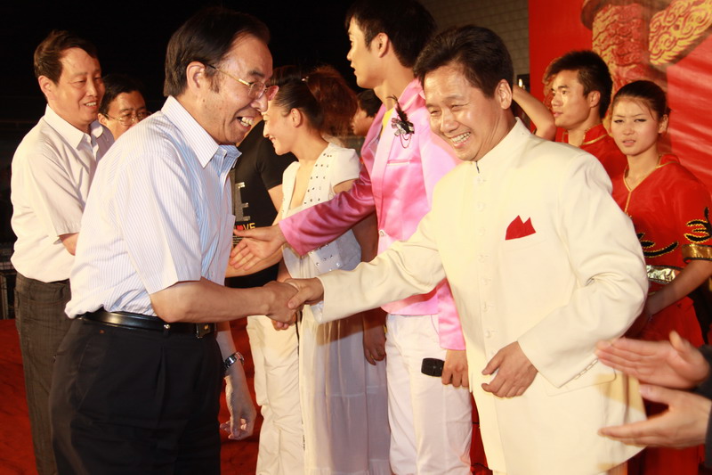 晚8時整,演出在《好運中國》的歡歌熱舞中拉開帷幕。國家一級演員常春榮的豫劇、李梅的秦腔表演以及精彩紛呈的雜技、小品、歌舞、丑角表演等,不斷把演出推向高潮,一曲《紅旗飄飄》唱出了場下所有人的心聲,當李曉峰出場時,臺上霓虹閃爍,臺下掌聲雷動,一首首革命紅歌歌頌黨、一支支創(chuàng)新舞曲贊美祖國母親,場下觀眾們一起高舉雙手,高聲吶喊,歡呼聲、笑聲久久的回蕩在美麗的夜空,群眾們說,今晚真是一個狂歡之夜,大家盡情的跳盡情的唱,共同慶祝我們偉大的黨90華誕生日。