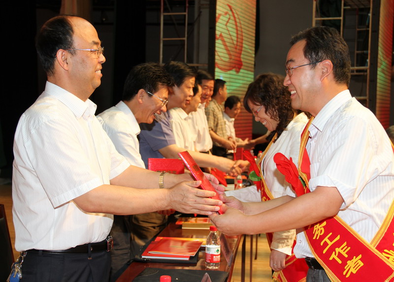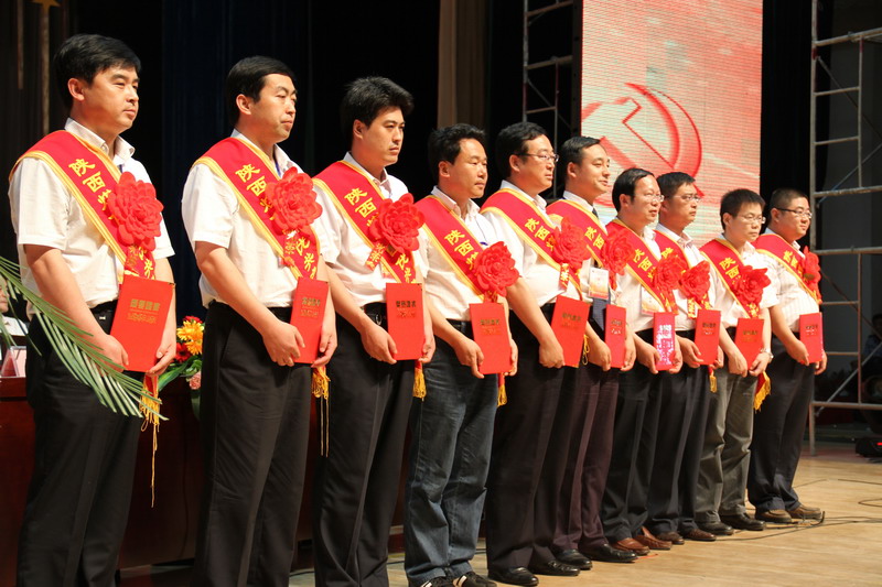 與會(huì)領(lǐng)導(dǎo)向受表彰的先進(jìn)集體和先進(jìn)個(gè)人代表頒發(fā)了獎(jiǎng)牌和榮譽(yù)證書。優(yōu)秀共產(chǎn)黨員代表、銅川礦業(yè)公司陳家山礦紀(jì)委副書記郝青松在會(huì)上宣讀了《建功“十二五” 再創(chuàng)新輝煌——給陜西煤業(yè)化工集團(tuán)公司全體黨員的倡議書》。