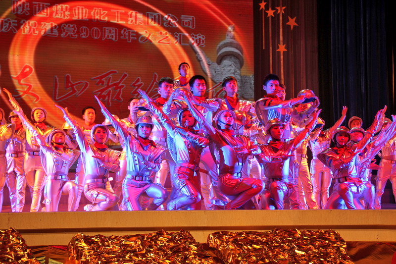 表彰大會(huì)結(jié)束后,由煤化集團(tuán)各成員企業(yè)職工自編自演的、主題為《唱支山歌給黨聽》的陜西煤業(yè)化工集團(tuán)公司慶祝中國(guó)共產(chǎn)黨成立90周年大型文藝匯演拉開帷幕,大合唱、舞蹈、歌伴舞、歌曲聯(lián)唱、陜北說書、器樂演奏、音樂快板、詩(shī)與舞等精彩紛呈的文藝演出充分展示了煤化人的才藝和精神風(fēng)貌,讓觀眾享受到了一場(chǎng)別開生面的精彩文化盛宴。