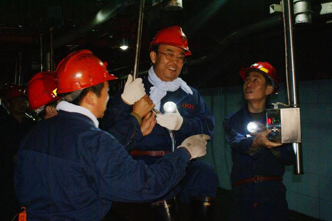 礦業(yè)公司黨委書記黃河一行到礦后,聽取了礦長寧文衛(wèi)、礦黨委書記武永發(fā)對礦井安全、質量標準化、生產生活等方面的匯報。隨后,在礦黨委書記武永發(fā)、礦長寧文衛(wèi)等領導的陪同下,深入井下現(xiàn)場指導工作。乘坐了680人下和570人下兩部架空人車后,黃書記對兩部架空人車的安全運行非常滿意,并同工作人員親切交談,了解職工生產和生活情況。在3603工作面的“超市”里,黃書記一行饒有興趣的查看貨架上的物品,詢問詳細情況,服務人員認真回答井下“超市”的運行情況。得知礦領導給予生活補貼,區(qū)隊領導認真落實,服務人員熱情周到,就餐人員非常滿意,黃河書記高興地說:“在搞好安全生產等工作的同時,要把職工的生活放在首位,創(chuàng)造條件為職工解決力所能及的事情,讓職工吃飽喝好,集中精力,全身心的投入到安全生產中,堅決實現(xiàn)安全‘零’目標,構建和諧新礦區(qū),讓職工享受改革發(fā)展成果,認真達到‘快樂工作、體面生活’!”黃河書記還對安全生產等工作提出了新要求。并對跟隨下井的礦業(yè)公司黨委宣傳部長李德強、質量辦主任李文庭,機電部副部長冉少鋒說:“你們不僅要對基層的企業(yè)文化和質量標準化建設給予指導,還要對他們取得的成績、做法、經驗宣傳出去!”