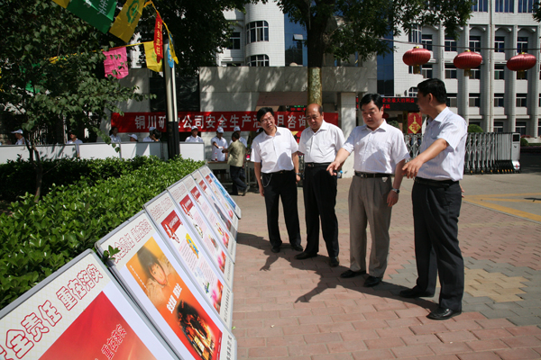 領(lǐng)導(dǎo)一行觀看銅川礦業(yè)公司安全教育展板