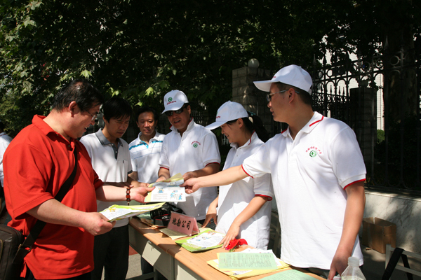 工作人員發(fā)放安全宣傳材料