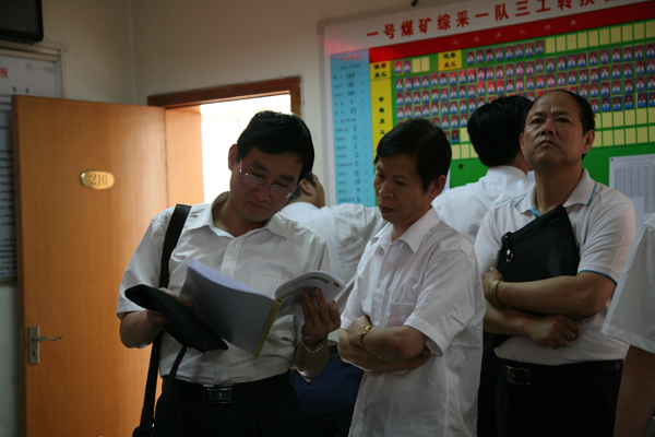6月14日早晨,銅川礦業(yè)公司參觀學(xué)習(xí)一行一下車,就受到黃陵礦業(yè)公司領(lǐng)導(dǎo)的熱烈歡迎。先觀看了黃陵礦業(yè)公司形象宣傳片,在黃陵礦業(yè)公司政研會會長、原黨委書記閆勃陪同下參觀了文化中心,感受到黃陵企業(yè)文化發(fā)展的歷程。接著,參觀學(xué)習(xí)人員分成兩組,一組由公司黨委書記黃河帶隊參觀黃陵企業(yè)文化地面建設(shè)情況;一組由公司副總、安監(jiān)部長延永華,公司副總、生產(chǎn)部長賈林安帶領(lǐng)生產(chǎn)礦井黨委書記、礦長前往一號煤礦井下參觀。