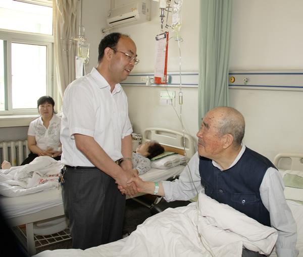 6月7日上午,公司黨委書記黃河帶領(lǐng)公司副總戴耀輝、黨辦室主任許江濤、老干處總支書記趙東理等一行,前往公司相關(guān)單位,走訪慰問了局機關(guān)80多歲老黨員龐魯民、薛濟仁等4位老黨員。在中心醫(yī)院,黃河書記走到他們的病床前,拉著他們的手,詳細了解老黨員們健康和生活等情況,詢問了他們的病情,囑咐老黨員保重身體,安享晚年。他還向龐老、薛老老介紹了銅川礦務(wù)局和銅川礦業(yè)公司的名稱情況。他送上慰問金,風(fēng)趣地說:“你們的黨齡比我的年齡都大”,表示一定會繼承老一輩留下的優(yōu)良傳統(tǒng)更好地發(fā)展,不辜負老一輩銅煤黨員的期望。對老黨員在銅川礦務(wù)局的開發(fā)建設(shè)做出的貢獻表示感謝,并要求老干處的工作人員在生活上多關(guān)心、照顧老黨員。“謝謝啊,謝謝了”受訪老黨員拉著書記的手久久不愿松開……