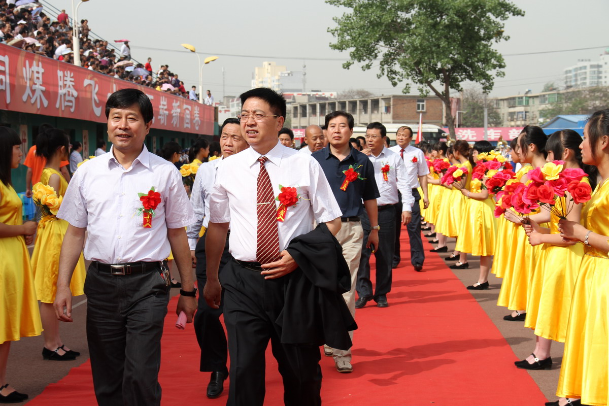 銅川礦業(yè)公司黨委書記黃河致開幕詞,他首先代表銅川礦業(yè)公司黨政工團(tuán)各級(jí)組織,向運(yùn)動(dòng)會(huì)的勝利召開表示熱烈的祝賀!向蒞臨運(yùn)動(dòng)會(huì)開幕式的各位領(lǐng)導(dǎo)、各位來賓表示熱烈的歡迎!向全體運(yùn)動(dòng)員、教練員、裁判員和廣大干部職工致以親切的慰問!黃河指出,近年來,在陜西煤業(yè)化工集團(tuán)公司的正確領(lǐng)導(dǎo)下,在社會(huì)各界和有關(guān)方面的關(guān)心支持下,銅川礦業(yè)公司各級(jí)組織和廣大干部職工堅(jiān)持以科學(xué)發(fā)展觀為統(tǒng)領(lǐng),緊緊圍繞改革、發(fā)展和穩(wěn)定中心工作,集中精力狠抓安全生產(chǎn),全力以赴維護(hù)礦區(qū)穩(wěn)定,深入開展創(chuàng)先爭(zhēng)優(yōu)活動(dòng),努力創(chuàng)建“三型六化”學(xué)習(xí)型企業(yè),積極實(shí)施文化強(qiáng)企戰(zhàn)略,民生工程建設(shè)成效顯著,礦區(qū)文明建設(shè)協(xié)調(diào)發(fā)展,各項(xiàng)工作穩(wěn)步推進(jìn),樹立了良好企業(yè)形象。