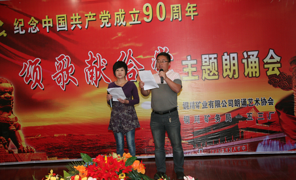 銅川礦業(yè)公司朗誦藝術(shù)協(xié)會成立于2009年的春天,志趣相投的員工相聚在一起,共同走進(jìn)詩情畫意之中,享受詩歌帶來的歡樂;一起走進(jìn)朗誦藝術(shù)的殿堂,享受朗誦藝術(shù)帶來的心靈震撼!在建黨90周年即將到來之際,用詩歌朗誦表達(dá)對偉大祖國的熱愛,用心靈之歌贊美偉大的中國共產(chǎn)黨。