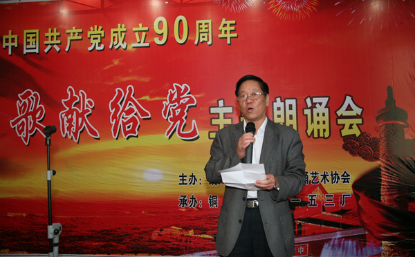 5月12日,銅川礦業(yè)公司朗誦藝術(shù)協(xié)會舉辦了“頌歌獻(xiàn)給黨”詩歌朗誦會。朗誦藝術(shù)協(xié)會主席、礦區(qū)工會副主席梁桂香,朗誦藝術(shù)協(xié)會副主席、公司紀(jì)委監(jiān)察處處長陳建斌,朗誦藝術(shù)協(xié)會副主席、供應(yīng)處處長郜鵬,朗誦藝術(shù)協(xié)會秘書長、一五三廠黨委副書記、紀(jì)委書記、工會主席張興國以及朗誦協(xié)會會員20余人進(jìn)行了精彩的表演。本次詩歌朗誦會還特邀了中國音樂著作權(quán)協(xié)會會員、《唱支山歌給黨聽》詞作者姚筱舟和省紀(jì)委警示室主任紀(jì)大海,一五三廠黨委書記李岐、廠長申聯(lián)選、副廠長田岳洲、郭玉俠以及一五三廠部分職工,為朗誦藝術(shù)協(xié)會添了光彩。