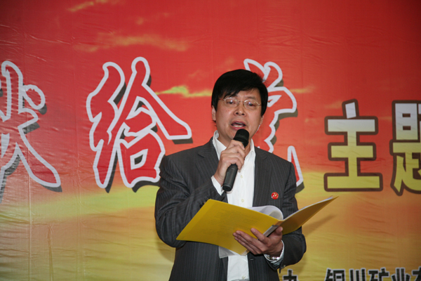 激情的朗誦,表達(dá)著對祖國濃濃的愛,對黨的深深的情。一五三廠黨委副書記、紀(jì)委書記、工會主席張興國為銅川礦業(yè)朗誦藝術(shù)協(xié)會“頌歌獻(xiàn)給黨”主題朗誦會而作的朗誦詩——從春天出發(fā),用心高唱銅煤人奮斗的光輝詩篇。盞盞礦燈犁開地下千年的沉寂,千尺井下轟鳴抖動的鉆機(jī),百米巷道流動著烏金閃熠,礦工臉上劃過道道墨染的汗跡,這經(jīng)年累月的礦山素描,大寫著銅煤的忠誠和無私的奉獻(xiàn),彪炳著銅煤人的理想和卓越的功績。銅川礦業(yè)躍升的曙光,在全體職工的面前矗立:實現(xiàn)安全穩(wěn)定“雙零”目標(biāo),創(chuàng)建“三型六化”學(xué)習(xí)型企業(yè),讓職工快樂工作、體面生活,就是銅川礦業(yè)輝煌的愿景,就是幾代銅煤人熱切的期許。我們?nèi)ゲ蓴X銅煤發(fā)展歷史的花絮,我們?nèi)ブ幐桡~煤人成長發(fā)展的足跡。