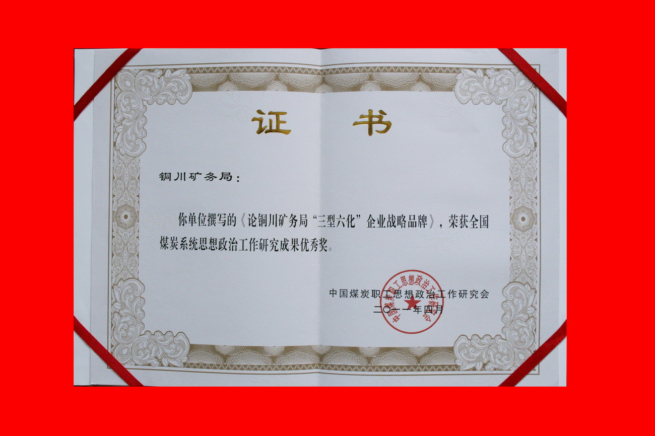 《論銅川礦務(wù)局“三型六化”企業(yè)戰(zhàn)略品牌》獲優(yōu)秀獎(jiǎng)