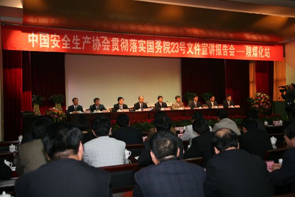 今天(4月21日)上午,煤業(yè)賓館餐廳二樓偌大的會議室里座無虛席,“中國安全生產協(xié)會貫徹落實國務院23號文件宣講報告會——陜煤化站”在這里舉行,上午9時正,報告會在主持人——銅川礦業(yè)公司(局)黨委常委、副局長兼安監(jiān)局長劉水利一段詩情畫意的開場白后正式開始。