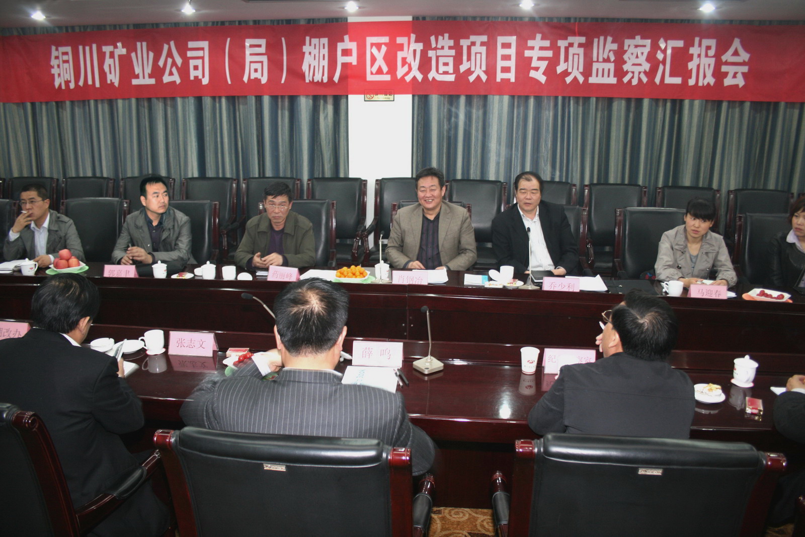 當天上午,檢查組在煤業(yè)賓館三號樓二樓會議室召開了棚戶區(qū)改造項目專項監(jiān)察匯報會,聽取了銅川礦業(yè)公司副總經(jīng)理薛鳴關于棚戶區(qū)改造項目管理情況的匯報。匯報會由陜煤化集團公司紀委監(jiān)察室副主任喬少利主持,銅川礦業(yè)公司原黨委副書記、紀委書記張志文,公司紀委、監(jiān)察室、棚改辦公室、規(guī)劃部、項目開發(fā)部、審計部、財務部等部門負責人及相關人員參加了會議。