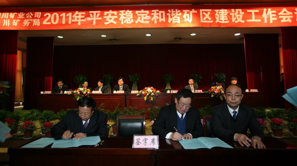 公司黨政領(lǐng)導(dǎo)宋志剛、黃河與各礦井、社區(qū)分別簽訂了平安穩(wěn)定責(zé)任書(shū)。