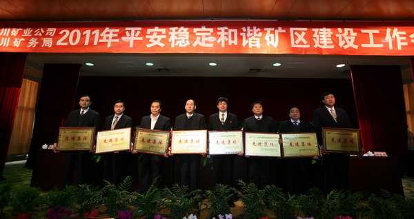 會(huì)上,公司黨政領(lǐng)導(dǎo)為先進(jìn)集體頒發(fā)了獎(jiǎng)牌。下石節(jié)礦、徐家溝公司、王家河社區(qū)結(jié)合本單位的實(shí)際,作了維護(hù)平安穩(wěn)定的經(jīng)驗(yàn)介紹。