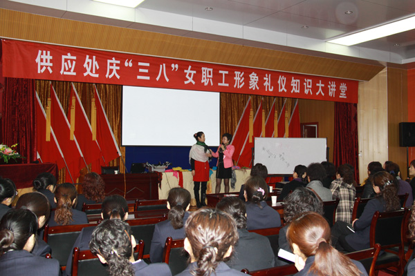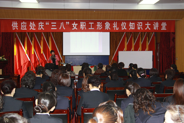 “如何做一個有魅力的九品女人?”、“一個女人怎樣才能讓人感覺擁有優(yōu)雅的氣度?” 3月7日,該講座在銅川礦業(yè)公司供應(yīng)分公司會議室舉行,來自不同單位、不同崗位上的140多名女職工在女性商務(wù)禮儀的資深講師——楊揚老師抑揚頓挫的講解中找到了做雅致禮儀女人的秘笈和感覺,在互動中對女性氣質(zhì)和自身魅力有了感性的理解和認(rèn)識,體味到職業(yè)氣質(zhì)風(fēng)格塑造的技巧和要義。